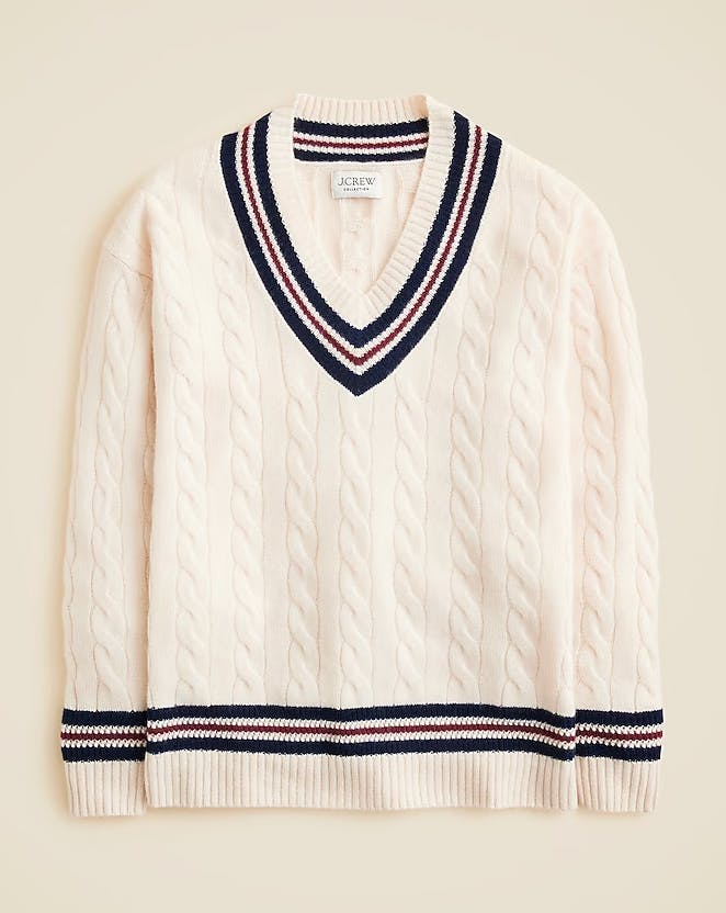 J. Crew Cashmere Cable-Knit Cricket Sweater, $298, J.Crew