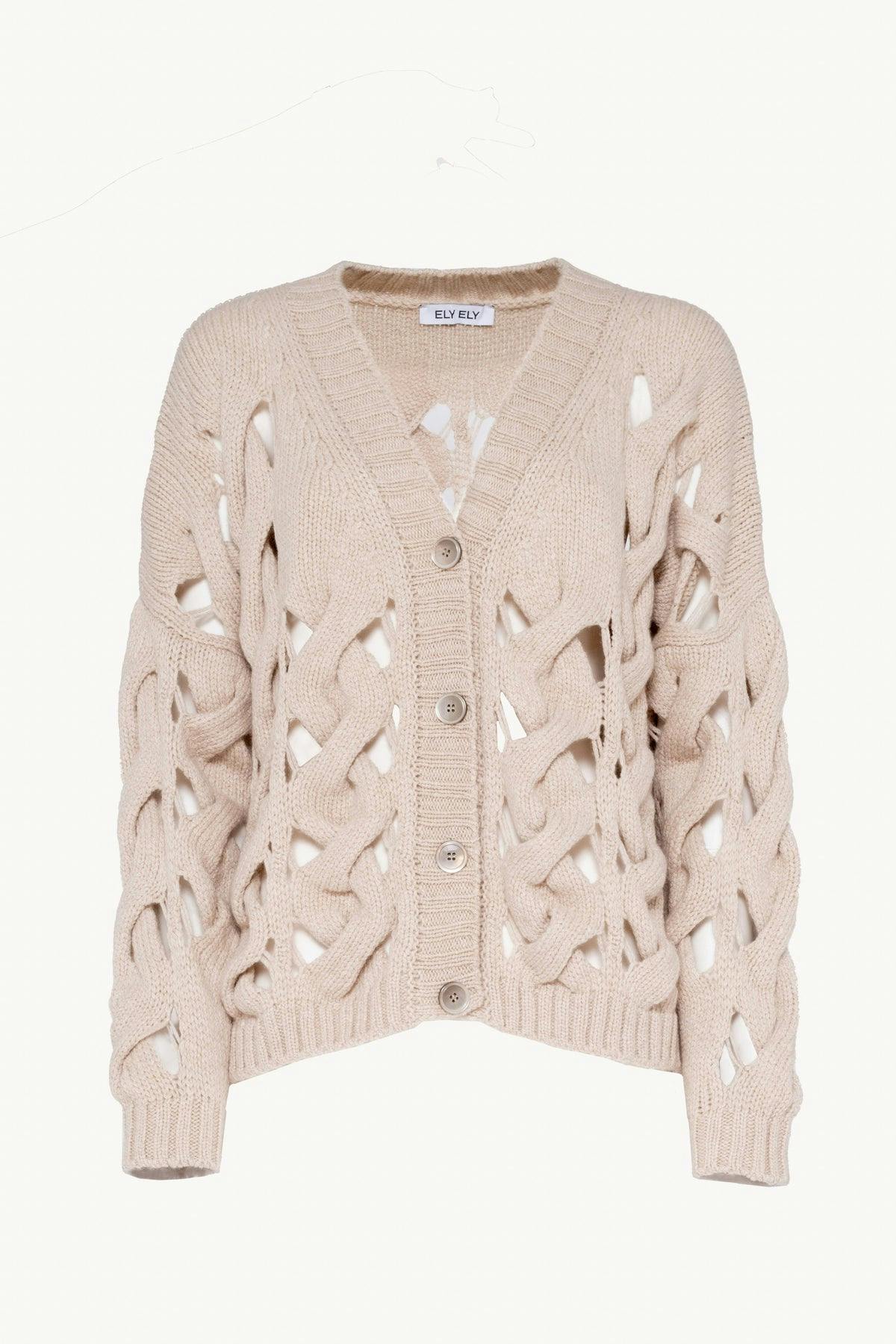 This desert beige cashmere cardigan from Ely Ely is a truly elite choice when it comes to layering this fall. The open detailing merged with the cable knit design creates a unique texture that is perfect for wearing over a simple, slim-fitted base layer. Style this cardigan over a beige turtleneck and a pair of light-wash denim jeans, plus your favorite boots—might we suggest a suede pair—to finish off the look.