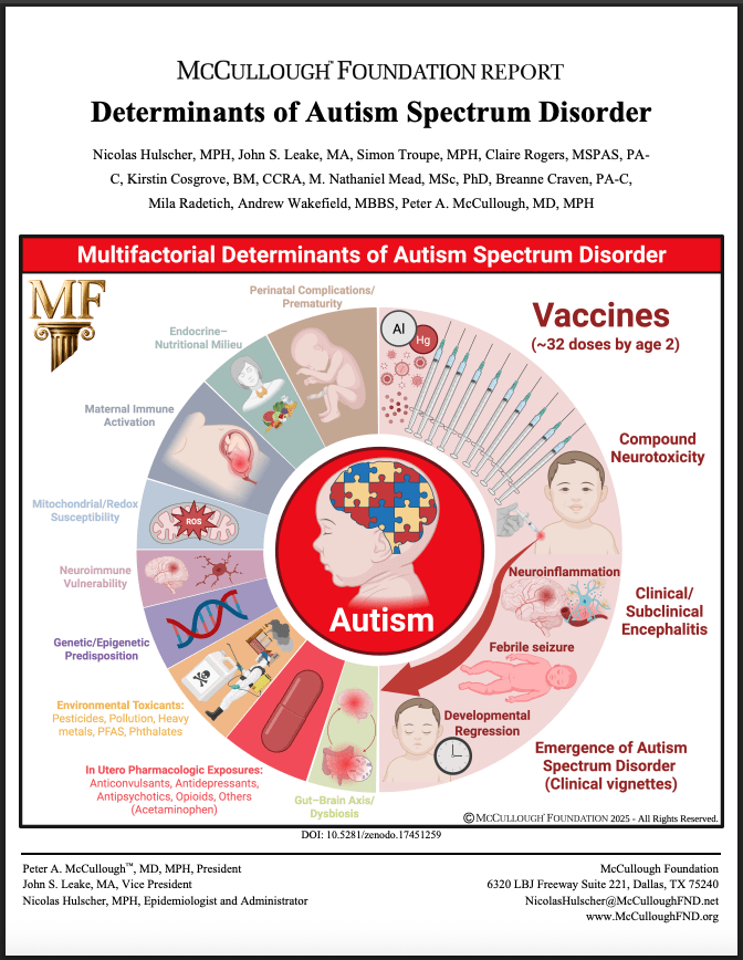 Dokument McCulloughovy nadace s názvem Determinanty poruchy autistického spektra přezkoumává ohromujících 136 vědeckých studií.