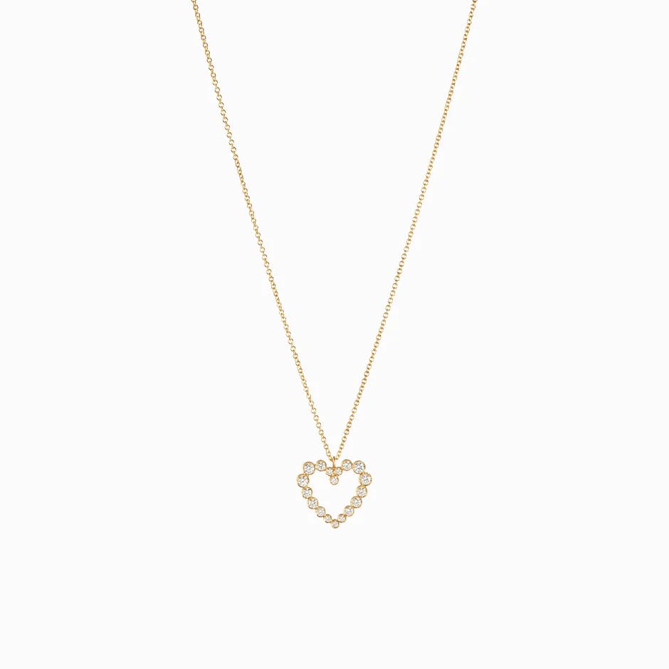 Embrace love with the most delicate heart-shaped design by Sophie Bille Brahe. Crafted from 18k recycled yellow gold and set with a charming array of sparkling diamonds, this piece offers a subtle way to her heart. This is a pendant made for everyday use that adds a special touch of shine to any collarbone.