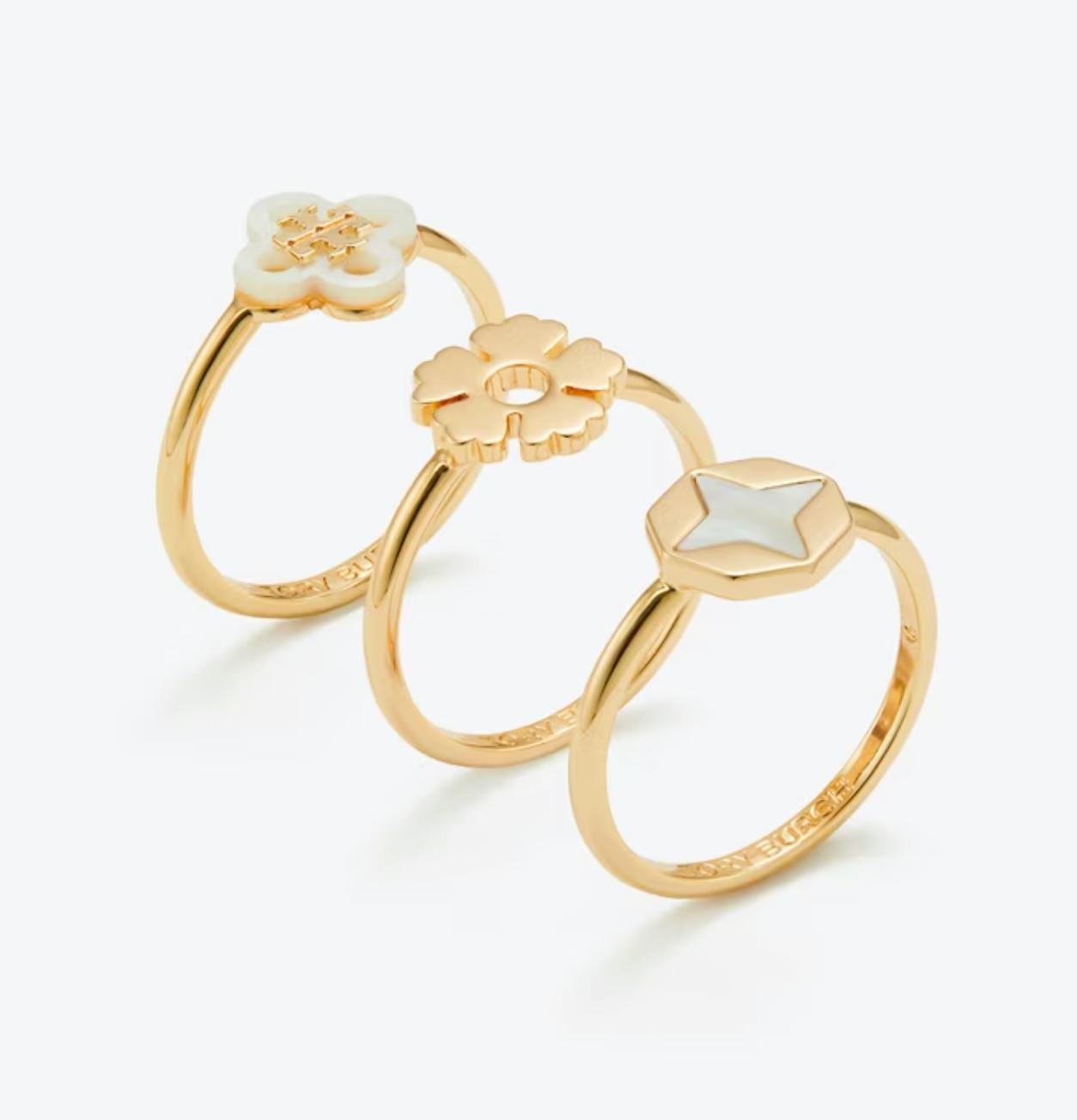 Tory Burch Forget Me Not Stacking Ring Set, $200, Tory Burch