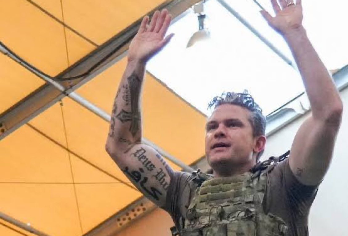 Pete Hegseth sa sám označuje za kafira, s nápisom كافر vytetovaným na pravej ruke. Na tom istom ramene má slová Deus Valt (Boh chce), bojový pokrik stredovekých križiakov. Ministerstvo obrany bolo v roku 2025 premenované na Ministerstvo vojny, tesne pred jeho nástupom do úradu. O pár mesiacov neskôr, Trump založil svoju Radu mieru. Hegseth sa zúčastnil amerických zverstiev v Iraku a Afganistane a porušovania ľudských práv na Guantaname. Momentálne vedie spoločné americko-izraelské vojenské útoky na Irán. Letecké útoky zasiahli okrem iného aj dievčenskú školu, pri ktorej zahynulo 165 detí a niekoľko nemocníc. Počas genocídy v Gaze, Izrael zničil takmer všetky fungujúce palestínske nemocnice. Na to netreba zabúdať, keď nabudúce budú presviedčať svojou ostrou rečou o túžbe po mieri.