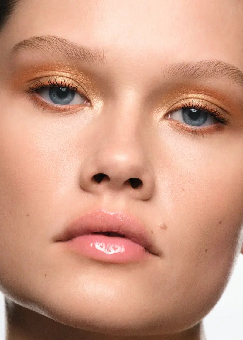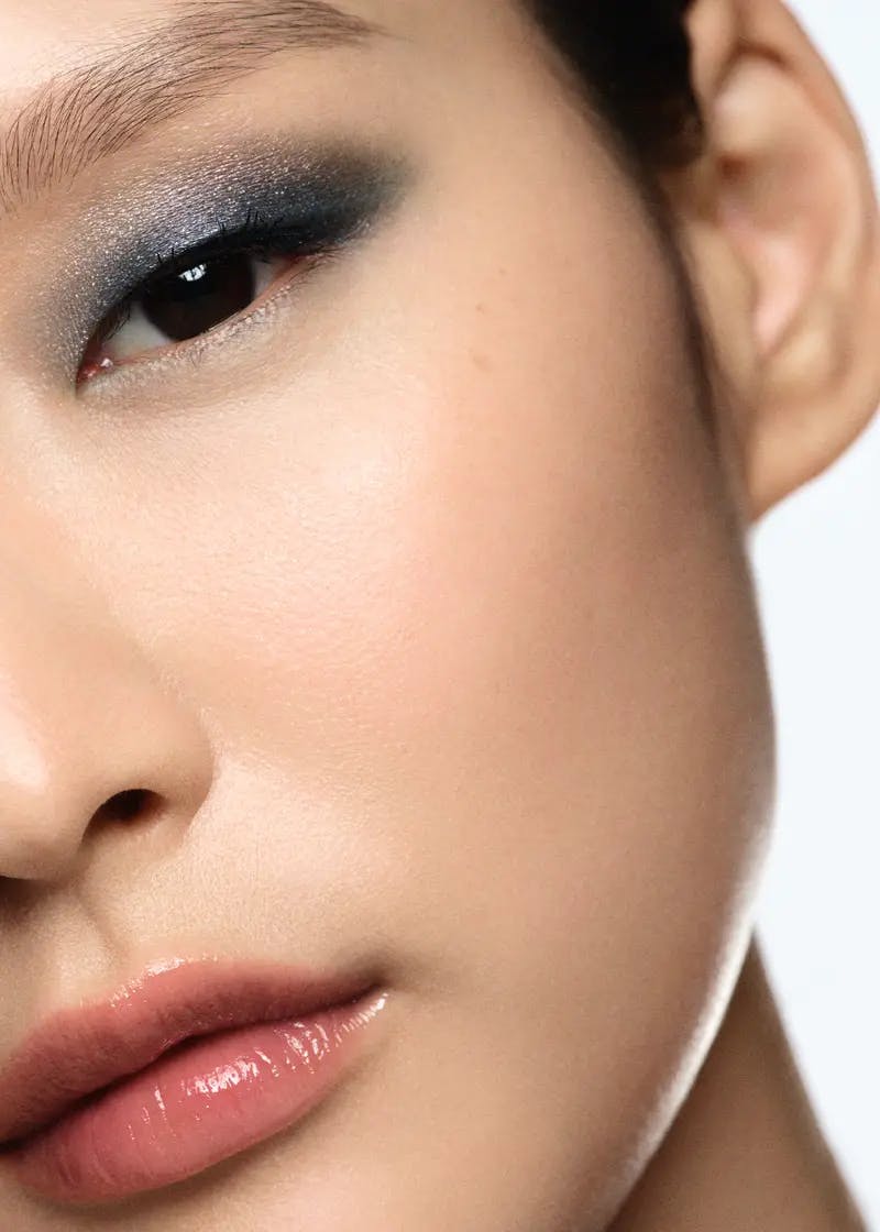 Then there are the Satin Lipsticks, available in Sand Dance, a mauvy pink, and Red Sunset, a warm brownish-red. Their texture glides on with the plush slip of a lip oil yet delivers the intense, juicy pigment of a classic lipstick. Lightly fragranced with a fresh floral note, the formula leaves lips feeling soft and hydrated for hours, with a radiant finish that never feels heavy or dry. The collection also includes the Liquid Lipstick Vinyl, a gloss-like, non-sticky formula offering a clear, high-shine finish infused with subtle blue sparkles. It’s an icy touch that ties the collection’s winter theme together.