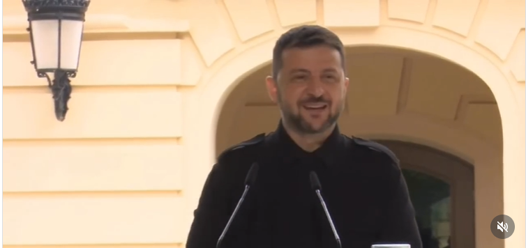 A na titulnom videu Zelenskij (neskrývajúc smiech, asi aký je duchaplný), vyhlásil: