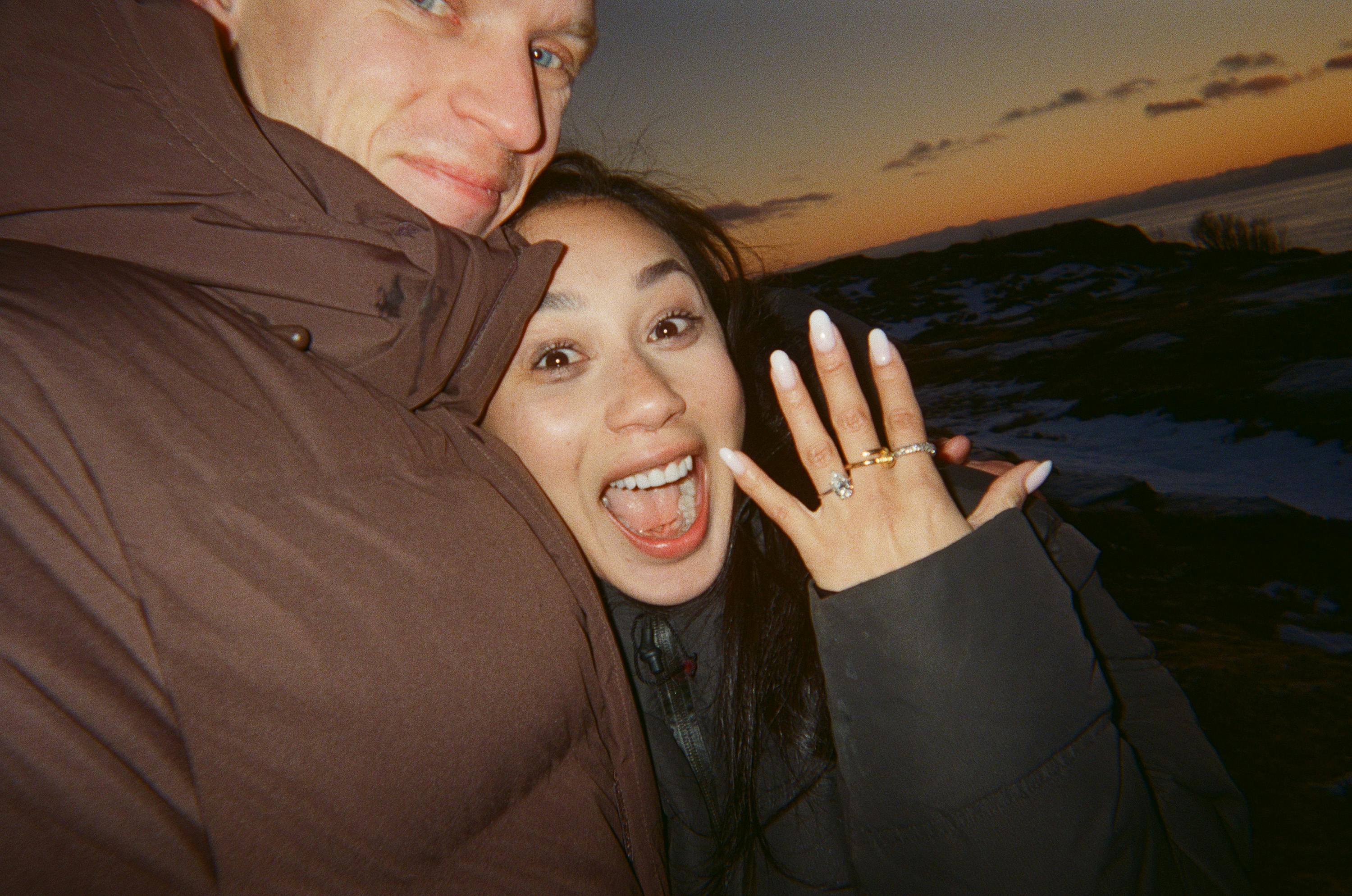 EVA GUTOWSKI: Olav and I started looking at rings around 9 months ago, which made it officially feel “real” (like, okay, this is happening!). But after that, it was pretty quiet. I knew it was coming eventually, but I had no idea when. We planned to spend this last Christmas in Norway with his family, and even flew our dog Hanalei to Europe for the first time. On that trip, he started looking at me differently… almost longer? He had this dopey look in his eye that was like “I’m looking at my future wife”. That’s when I started feeling like “hmm… he’s definitely hiding a big secret,“ because it was literally all over his face.