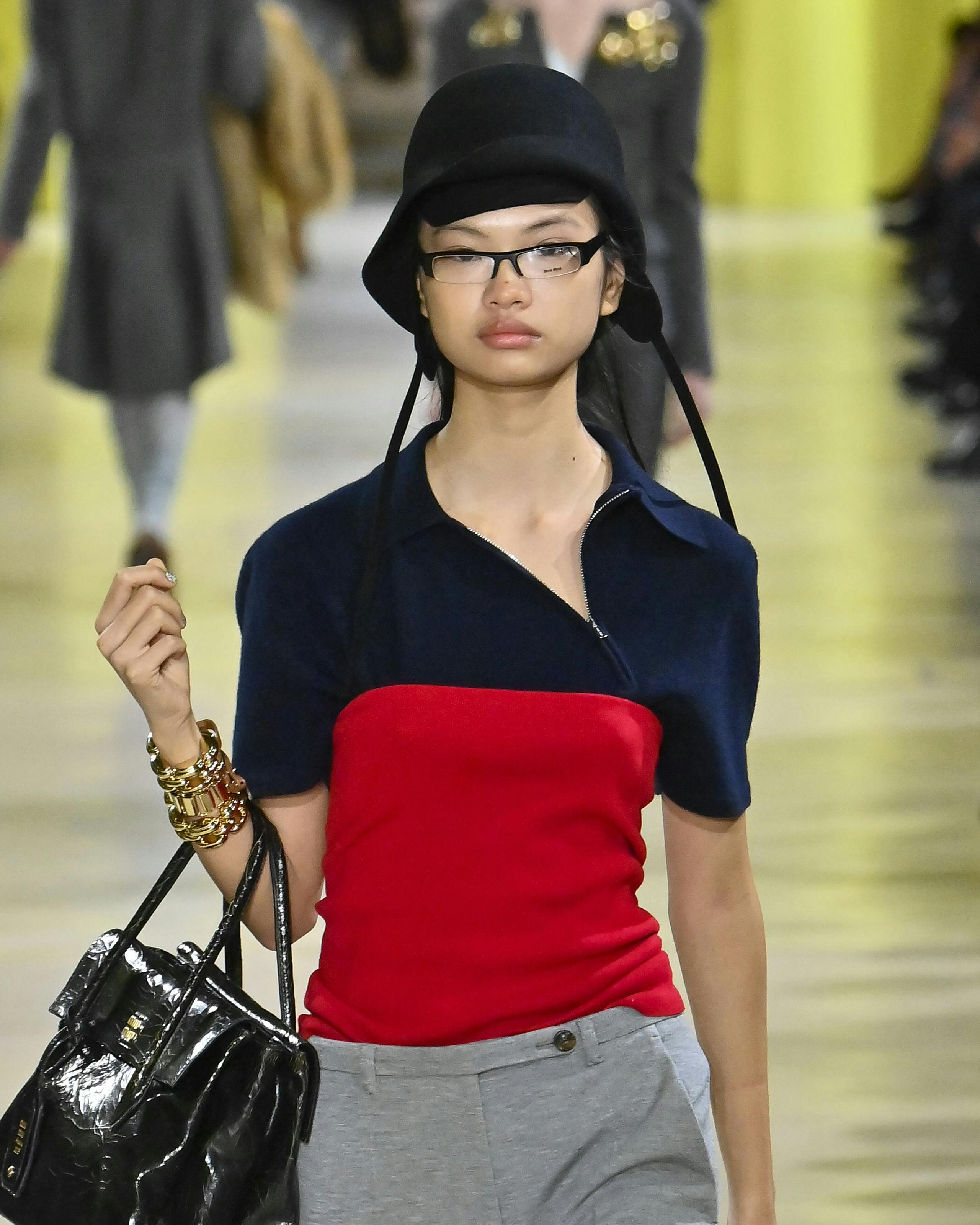 The trend also extends beyond the runway. “With [search term] interest in fashion hat hitting a record high over the past few months, the hat is the new It bag,” says Sagal Mohammed, editorial and creative lead for Google Shopping, who also highlights the pillbox baseball hat as among fall’s most sought-after styles. Actress and comedian Chloe Fineman created one with a short brim she calls the Co-Pilot as part of her retro-inspired capsule collection for Mother. “I co-wrote the SNL sketch ‘Big Dumb Hat’ partly as a dig at myself,” Fineman says. “Hats are sort of like wigs to me in that they’re totally transformative! I have a baseball hat with a team I don’t pay attention to; a big sun hat for the farmer’s market or to hide whatever medspa work I’ve done; and now, of course, my Mother hat to feel like a whimsical French girl.”