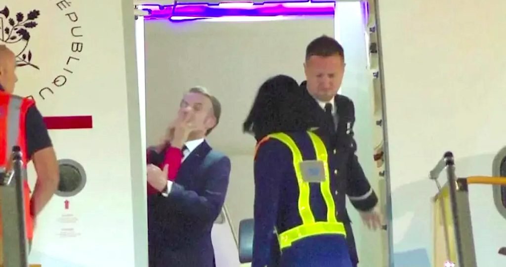 Videozáznam, ktorý zverejnil okrem iného kanál Nexta na sieti X, ukazuje, ako personál otvára dvere lietadla. Za nimi stojí prezident Macron a pozerá sa smerom ku kokpitu. Vtom ho Brigitte Macronová, stojaca mimo záber, rukami za bradu odstrčí.
