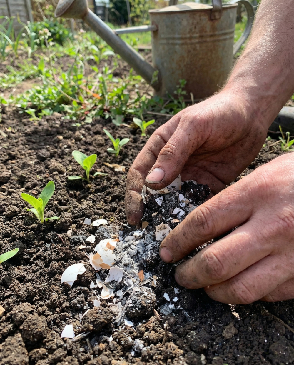Popol jemne zapracujte do pôdy spolu s drvenými vaječnými škrupinami. Škrupiny dodávajú vápnik postupne počas celej sezóny, čím predchádzajú hnilobe špičiek plodov, čo oceníte najmä pri neskoršom pestovaní paradajok.