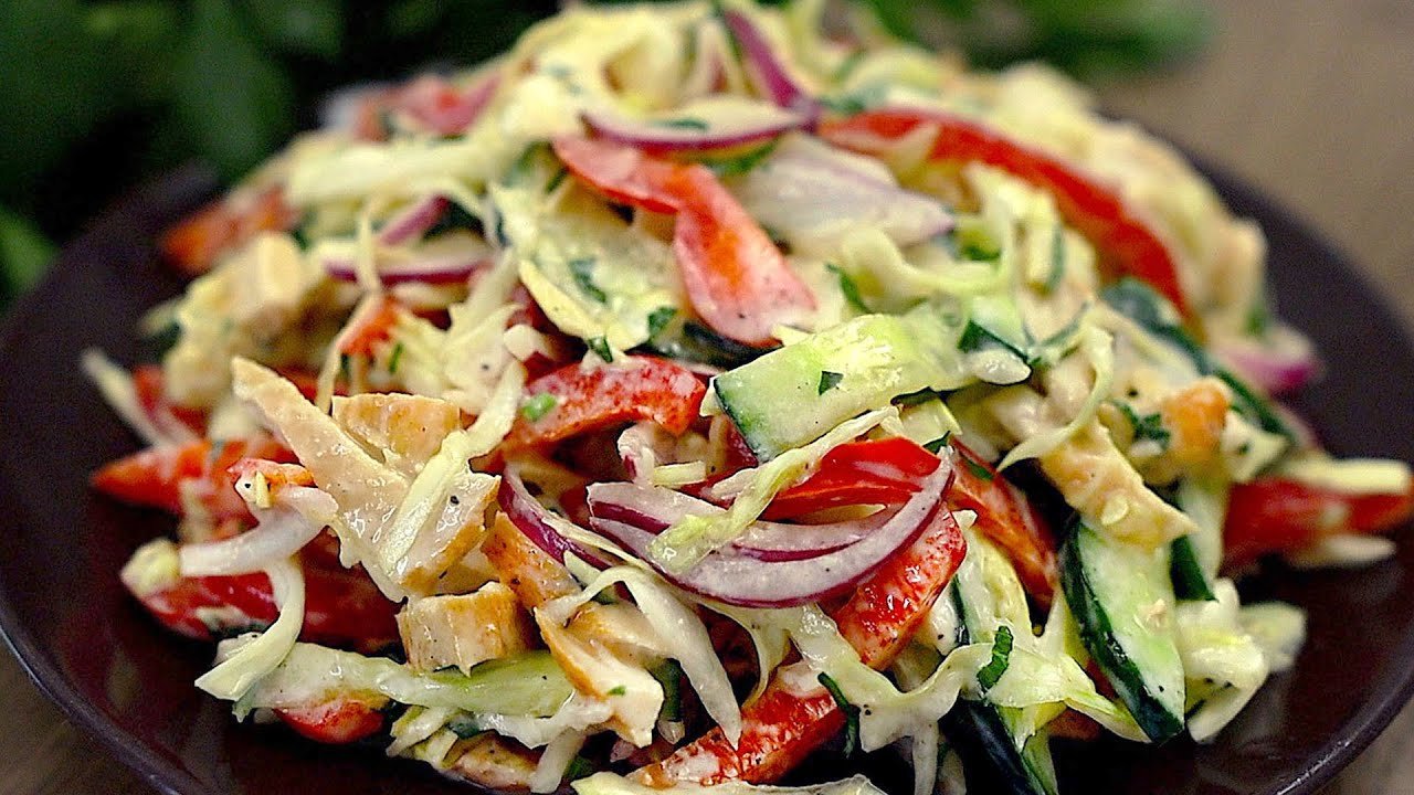 Gesund und SO LECKER! Ein einfacher und sättigender Salat mit Gemüse und Hühnchen!