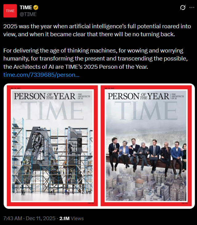 Meanwhile, today TIME Magazine announced its ‘Person Of The Year’ cover and instead of giving it to a single person, the magazine gave it to a collection of big-tech oligarchs, technocrats and transhumanists instead.