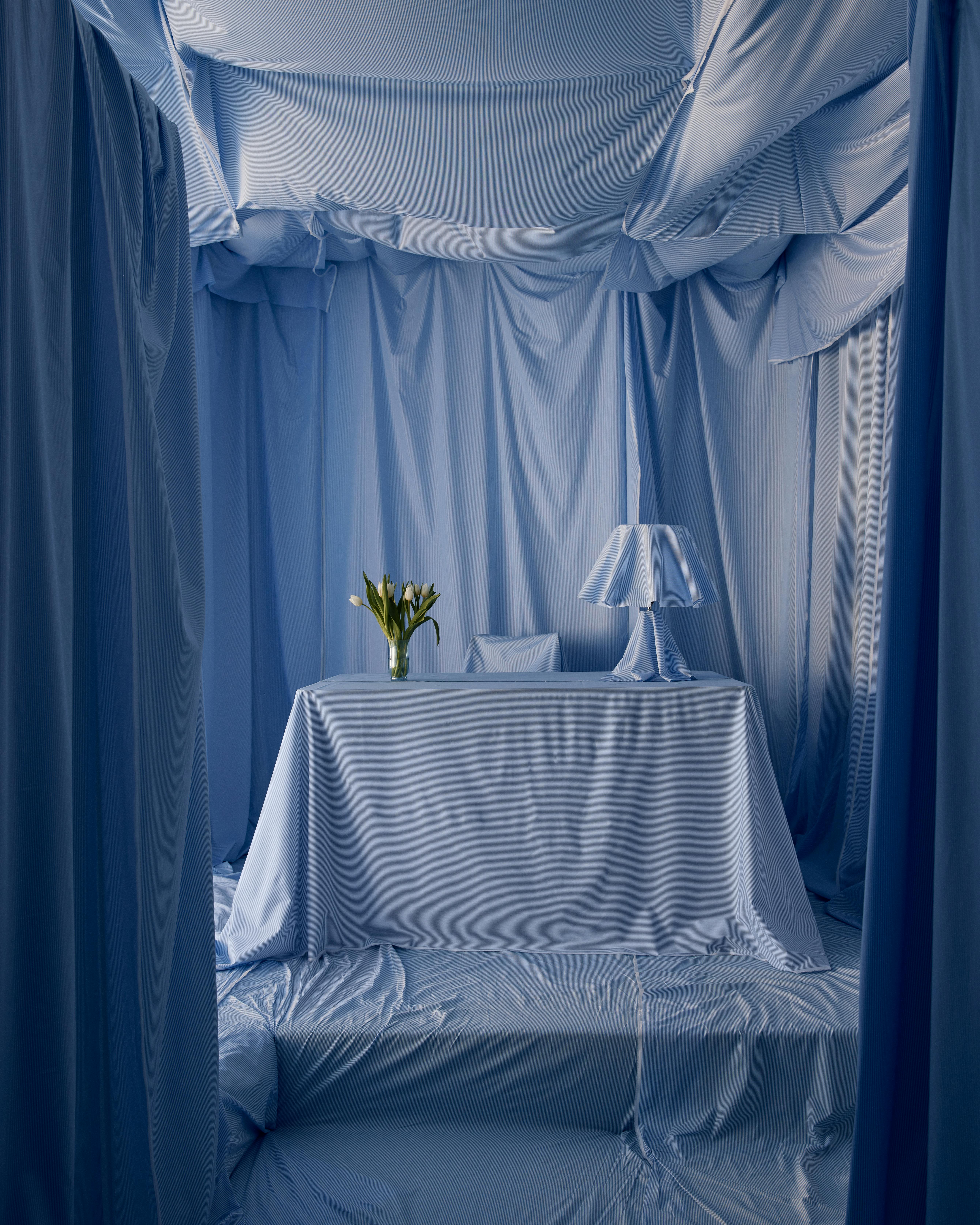 This holistic approach naturally aligns with a theatrical sensibility. Cooper often references the stage curtain—the ultimate gesture of reveal and conceal—as inspiration for his installations. “I approach everything with a very theatrical lens,” he says. “There’s always the question of what’s behind the curtain, what’s being shown, and what’s being held back.” In his world, drapery becomes both architecture and a narrative device: a way to guide the eye and shape emotion.