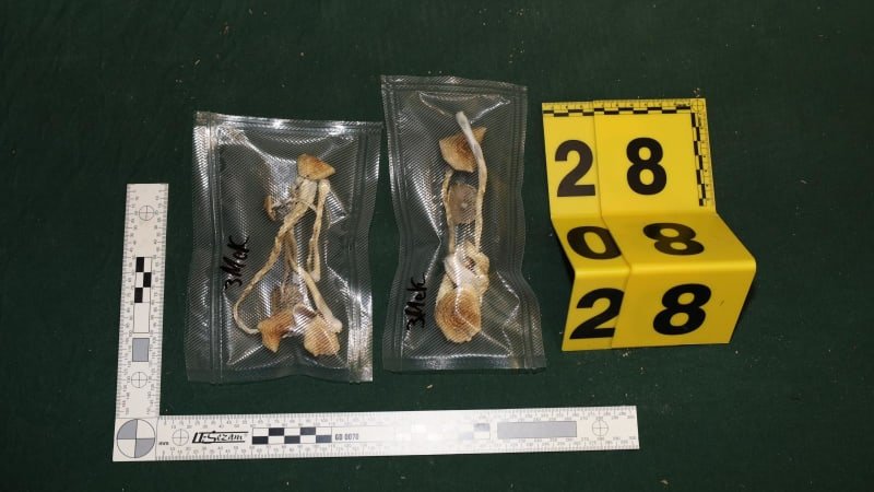 „Při domovní prohlídce našli celou škálu drog v podobě 98 gramů látky MDMA známé jako extáze, 407 gramů látky psilocin (houbičky), 10 litrů tekutiny, která pozitivně reagovala na přítomnost DMT (dimethyltryptamin), 98 gramů LSD, 98 gramů hašiše, 132 gramů marihuany a 46 gramů ketaminu,“ sdělil Daněk.