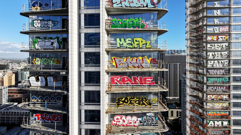 Nedostavěný komplex tří věžáků Oceanwide Plaza se stal celosvětově známým poté, co se na sociálních sítích začala šířit videa, která ukazovala jejich fasády kompletně pokryté graffiti. Z původně luxusního projektu za 1,2 miliardy dolarů se stal obří betonový skelet hyzdící panorama města.