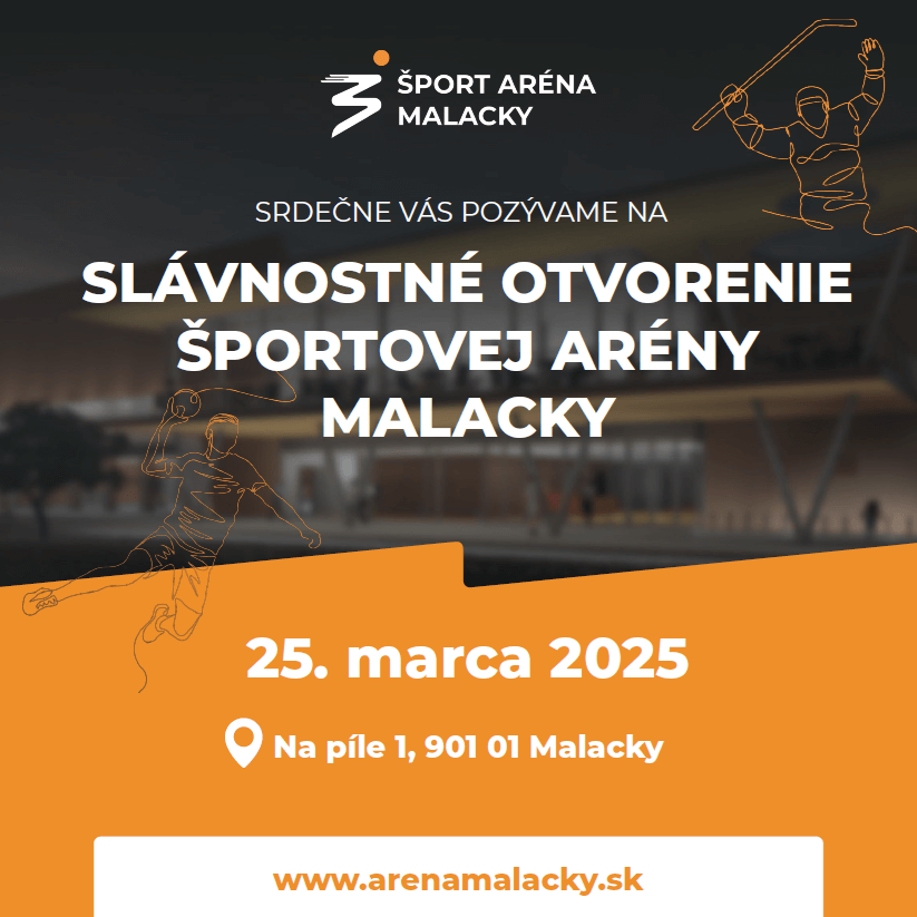 Slávnostné otvorenie novej športovej arény v Malackách sa uskutoční v utorok 25. marca. Srdečne pozývame verejnosť!