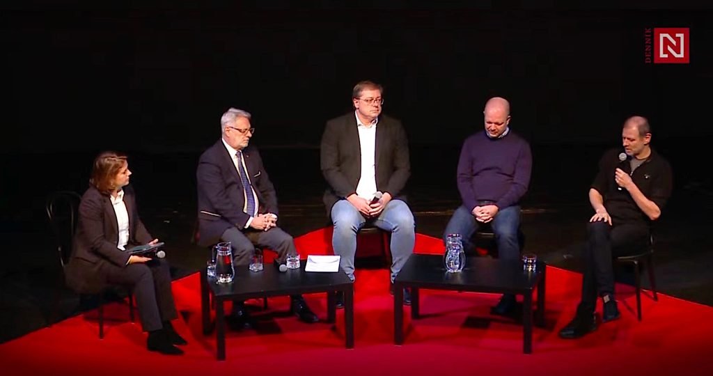 Bývalý komunistický nomenklatúrny káder, niekdajší aktívny člen KSS a redaktor Nového Slova (hlasnej trúby Ústredného výboru Komunistickej strany Slovenska) Marián Leško, ktorý dnes na Slovensku dáva ľuďom školenia z demokracie ako komentátor Denníka N, progresívny sociológ a bývalý programový koordinátor Sorosovej politickej mimovládky Nadácia otvorenej spoločnosti – Michal Vašečka, držiteľ Sorosovej novinárskej ceny a otec predsedu PS Martin M. Šimečka a šéfredaktor Denníka N Matúš Kostolný komentovali dňa 18. februára 2025 aktuálne politické a spoločenské udalosti v bratislavskom divadle DPOH. Diskusiu moderovala redaktorka Denníka N Monika Tódová, ktorá od Bidenovej vlády dostala na šírenie dezinformácií 55-tisíc dolárov.