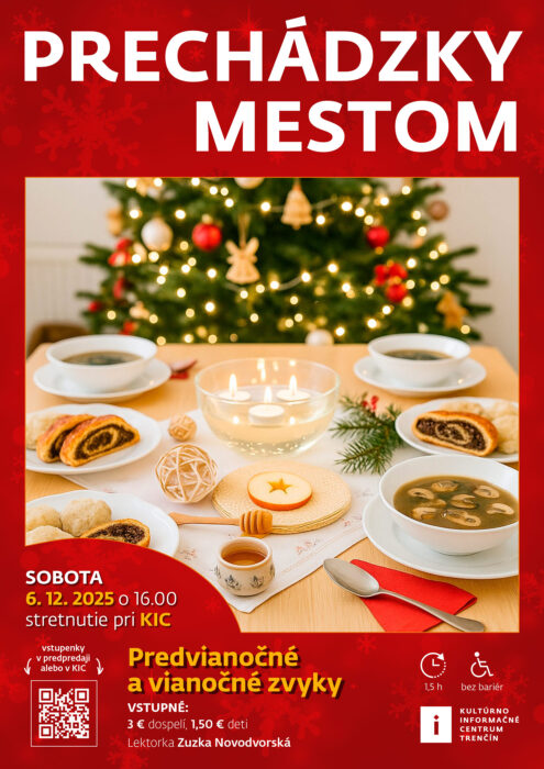 Spoznajte tajomstvá vianočných tradícií, pridajte sa na decembrovú prechádzku mestom so sprievodkyňou Zuzkou Novodvorskou. Stretnutie bude 6. decembra o 16.00 hod. pri Kultúrno-informačnom centre na Mierovom námestí.