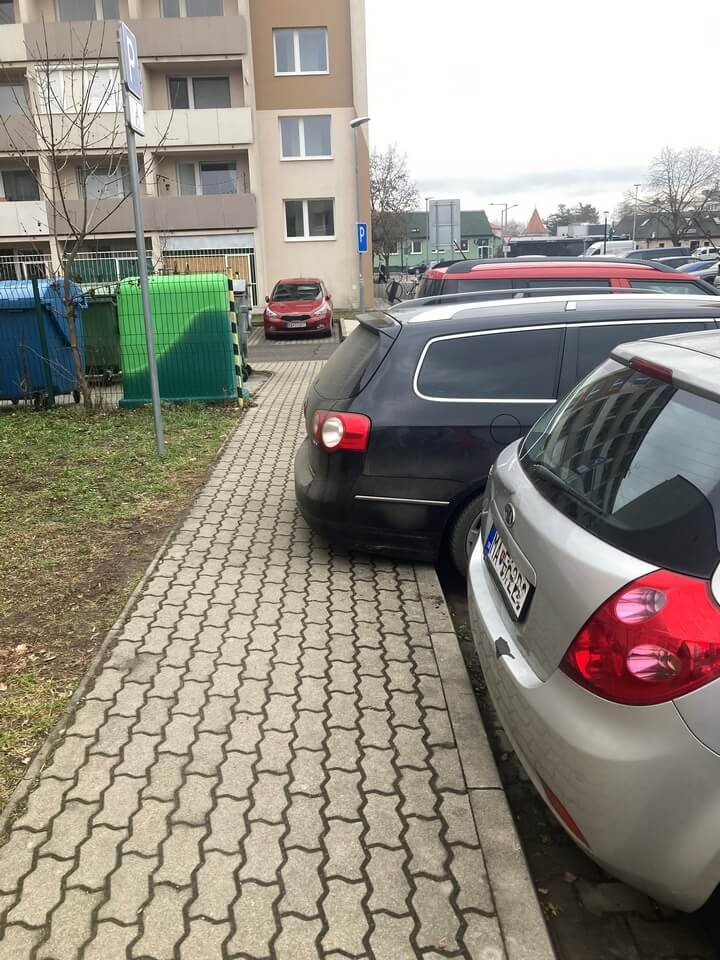 Tu nič také nehrozí. Iba človek s obmedzenou pohyblivosťou či rodič s kočíkom bude mať mierny problém. Presne tam cielime. Porovnajte si sťažený pohyb mamičky s dieťaťom či seniora s barlou a „diskomfort“ vodiča, ktorý okrem parkovania musí ešte aj myslieť na chodcov…