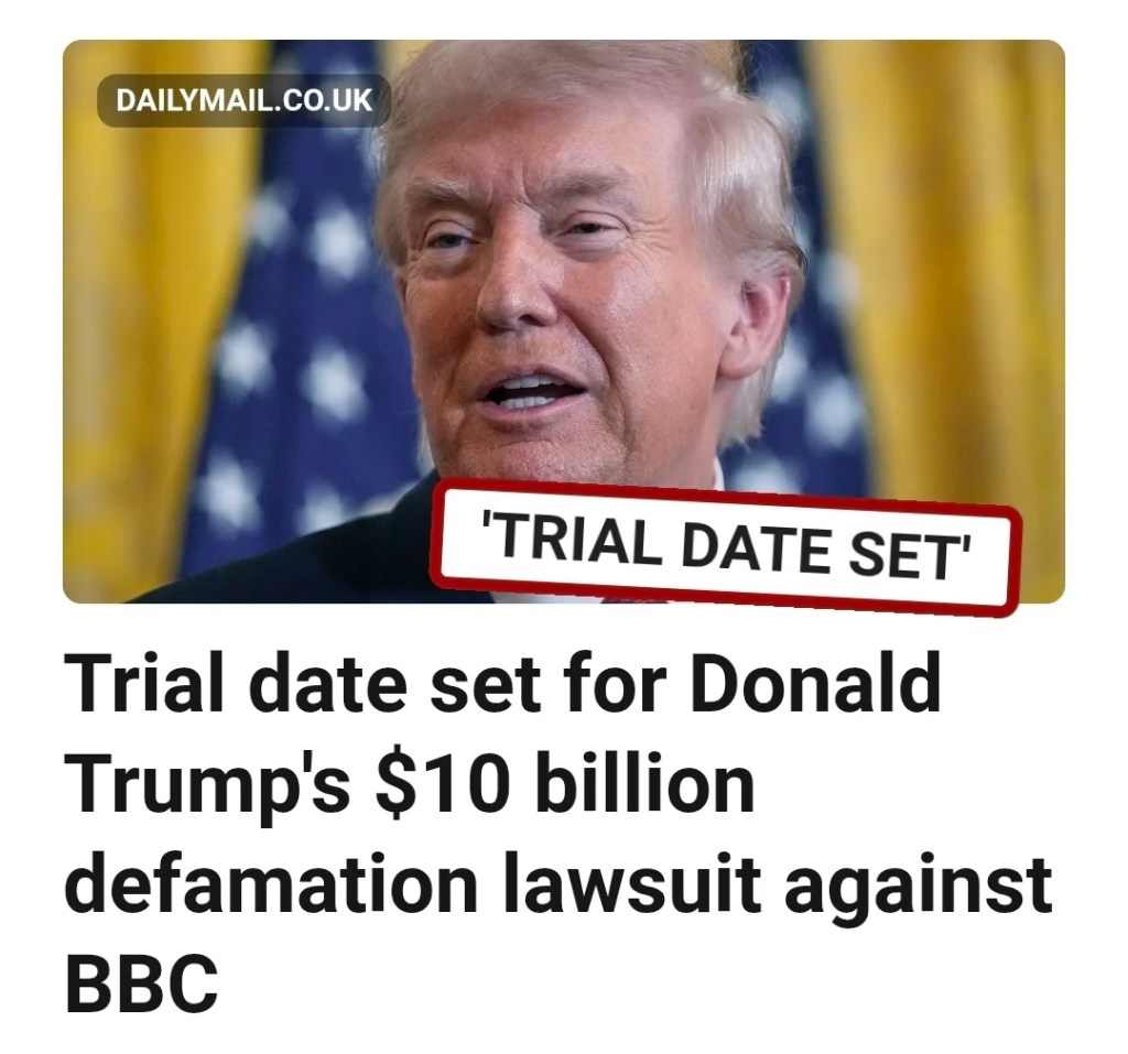 Žaloba Donalda Trumpa proti BBC za ohováranie v hodnote 10 miliárd dolárov sa na Floride začne pojednávať 15. februára 2027. Žaloba vychádza z Trumpovho prejavu počas incidentu v Kapitole 6. januára, ktorý podľa neho bol zavádzajúco zostrihaný v dokumente Panorama.