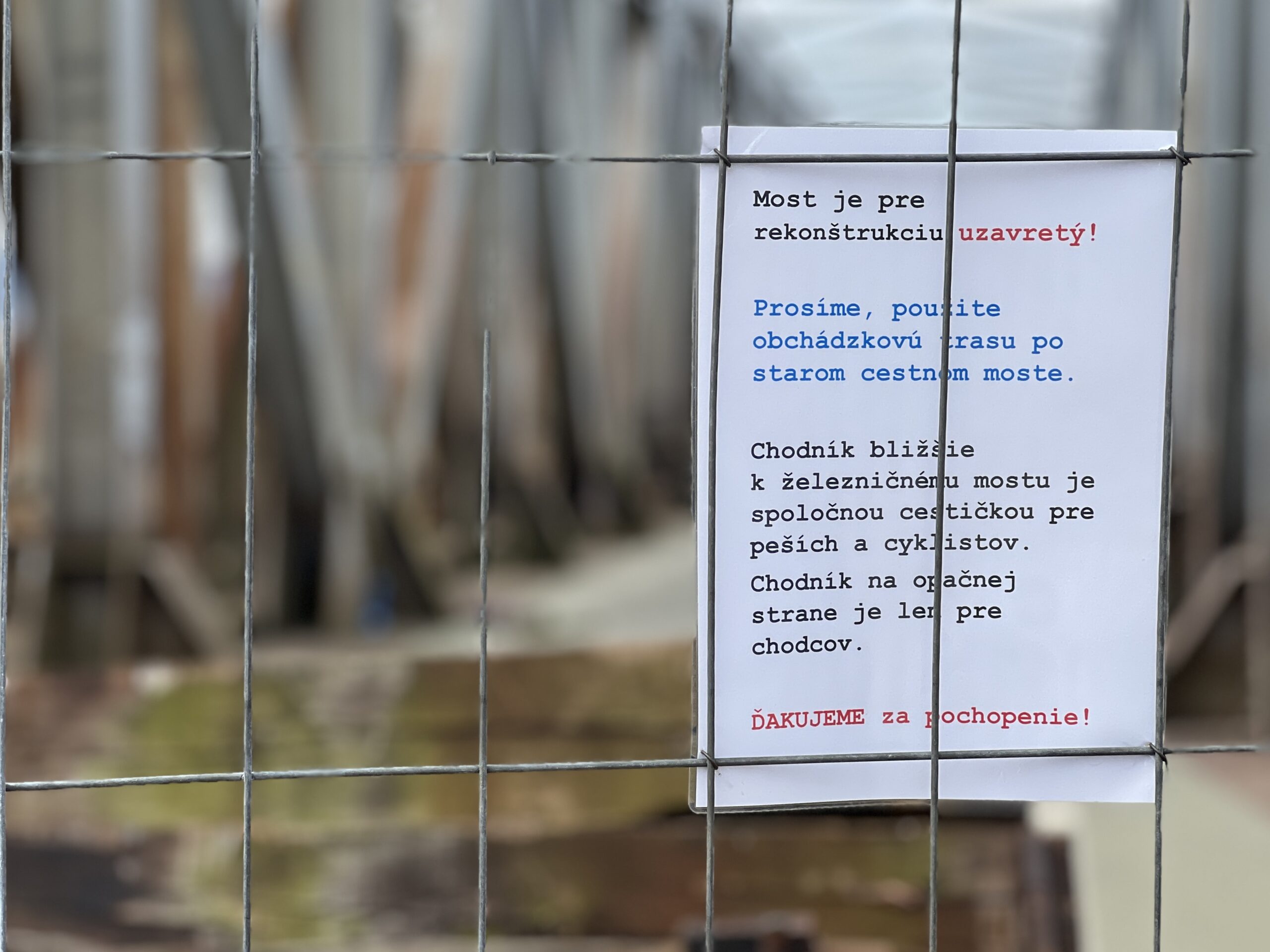 Most je dočasne úplne zatvorený od 31. marca tohto roka. Je staveniskom. Znamená to, že v žiadnom prípade nie je možné naň vkročiť. Je nutné tento dočasný stav rešpektovať a strpieť.