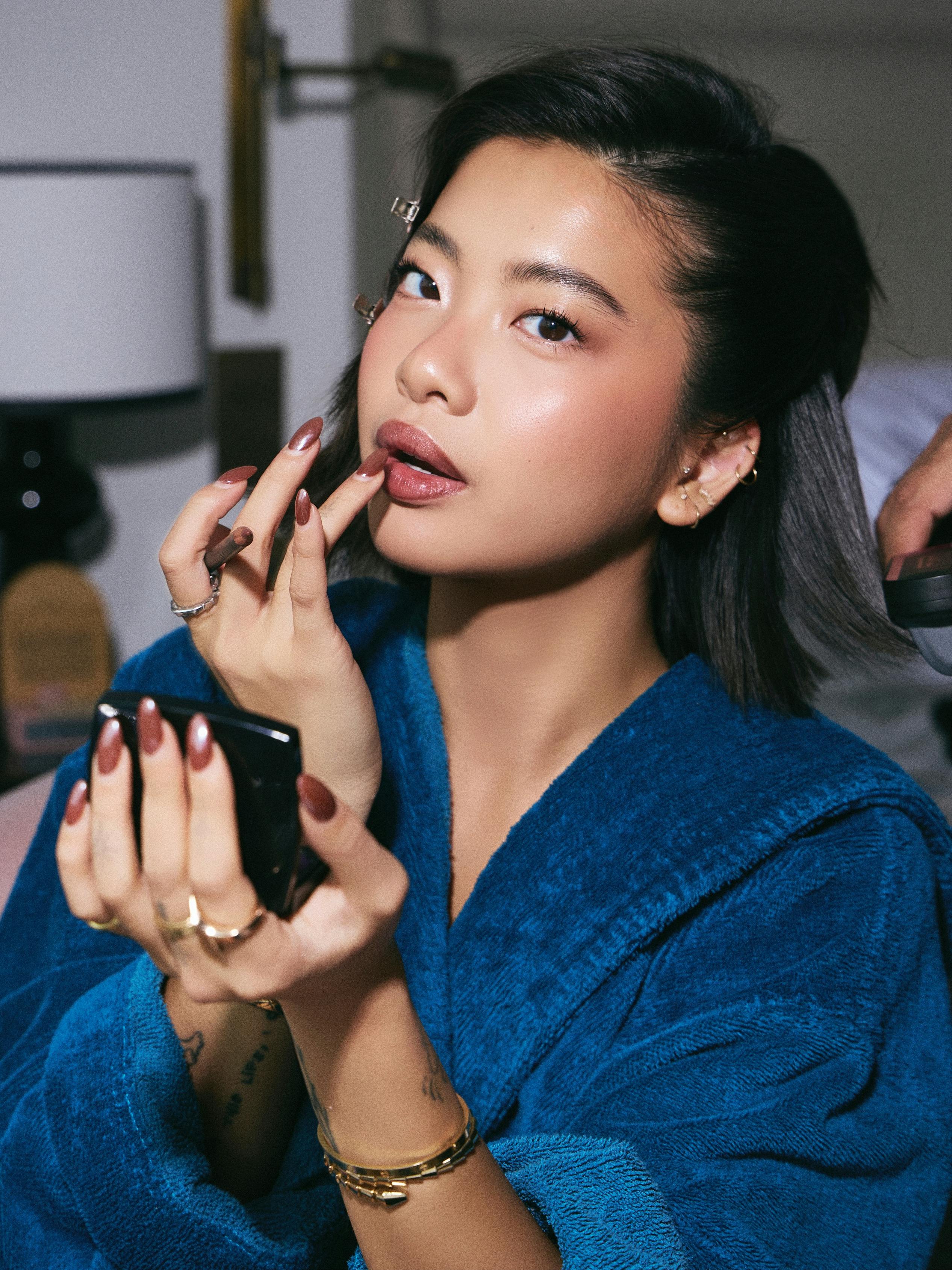 Whether she’s in slinky vintage-inspired minidresses, delicate romantic blouses, or ultra-cool boho-chic styles, Hui is authentically exploring her personal style—uninhibited by fleeting trends, and undeterred by bold looks. In her journey through the beauty and makeup worlds, her expertise, artistry, and drive are equally as palpable, both on and off the small screen.