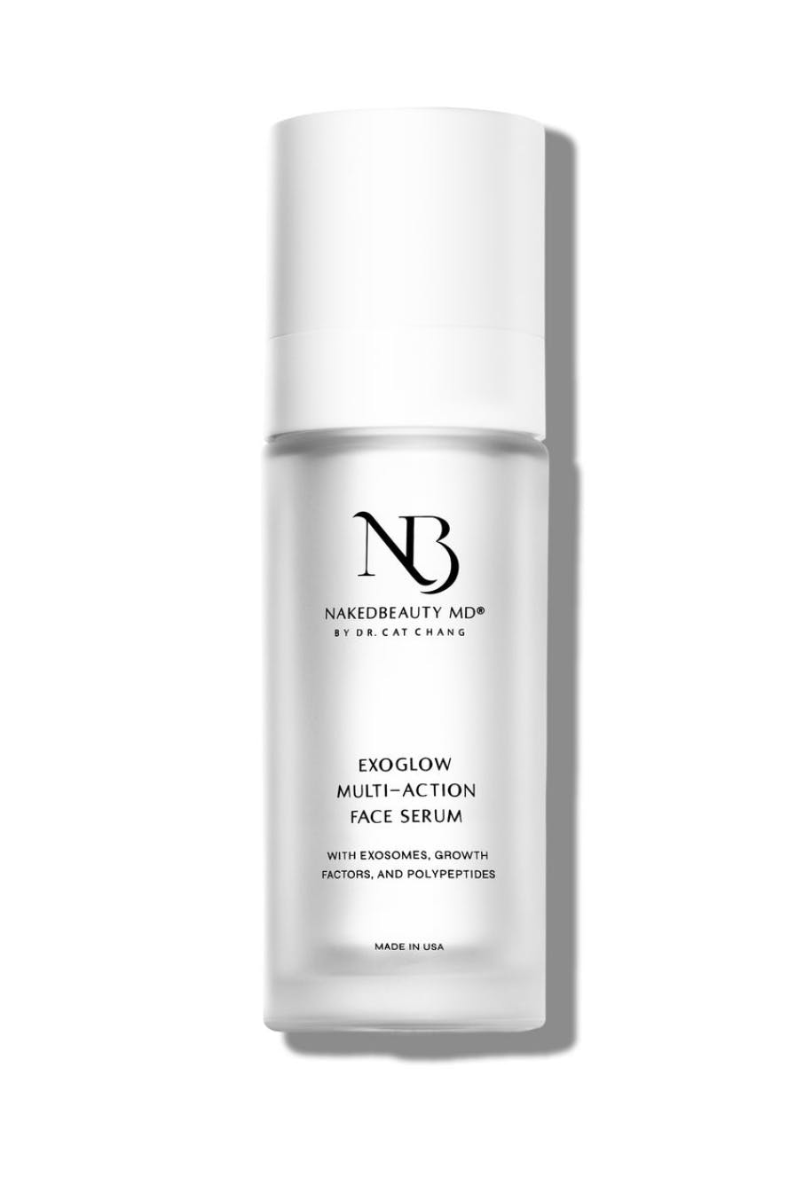 NakedBeauty rides the exosome trend with its ExoGlow Multi-Action Face Serum, a four-in-one treatment designed to rejuvenate and protect the skin in a single step. Combining exosomes, growth factors, polypeptides, antioxidants, vitamin C, and niacinamide, the serum hydrates, brightens, and helps smooth texture while improving elasticity and firmness. It targets visible signs of aging, helping to minimize fine lines, lift the skin, and boost collagen and hyaluronic acid production, all while supporting long-term skin health. Designed by Dr. Cat Chang, the serum delivers advanced, multi-level rejuvenation for a resilient, radiant, and youthful-looking complexion.