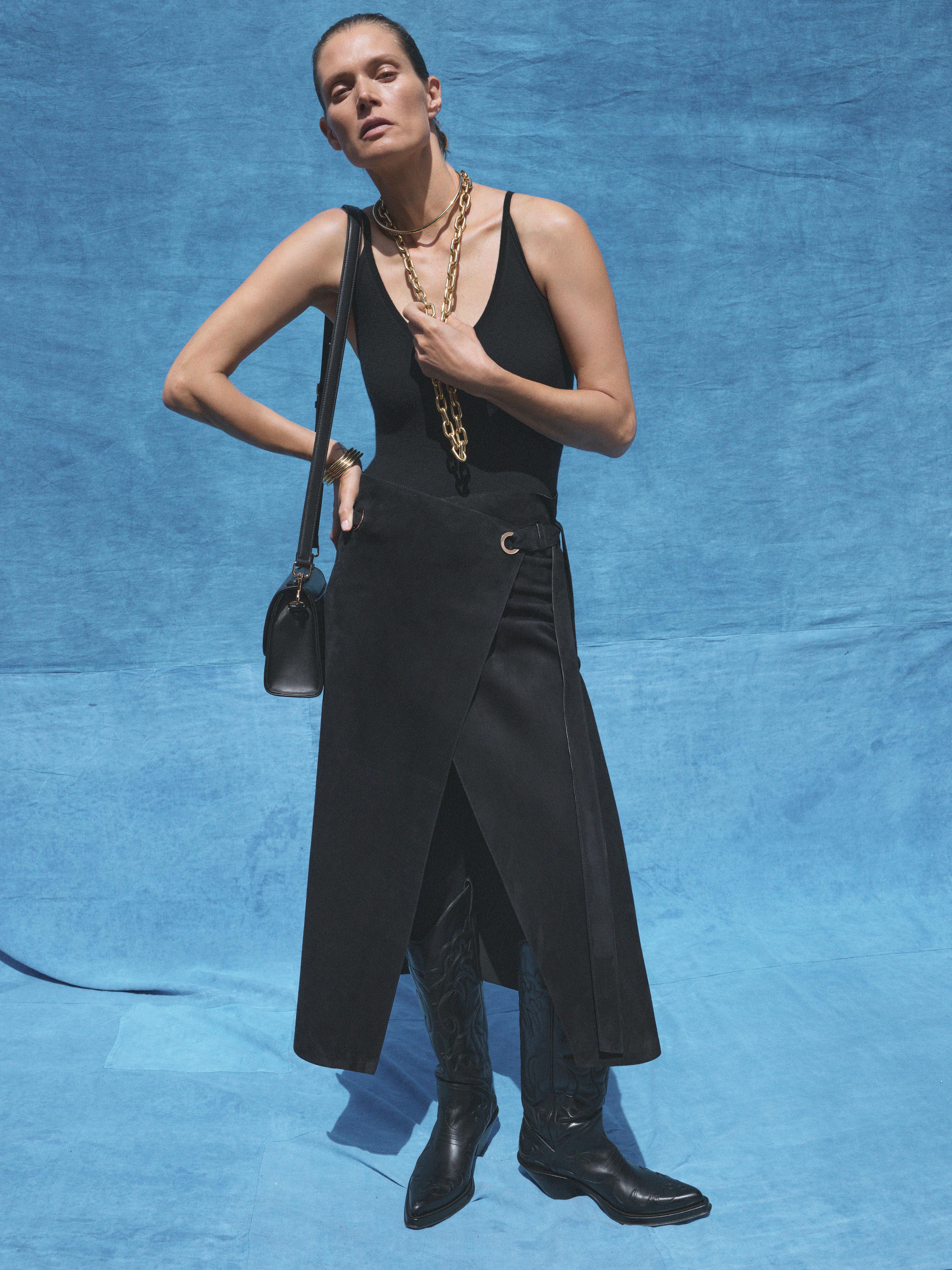 Resort and Cruise collections were originally conceived to offer summery wardrobes suitable for tropical midwinter escapes, but most women spend a good chunk of December and January in the office. One of the trends dominating the Resort 2026 season—the refined wrap skirt—nods to this reality with transitional pieces built for both sand and street.