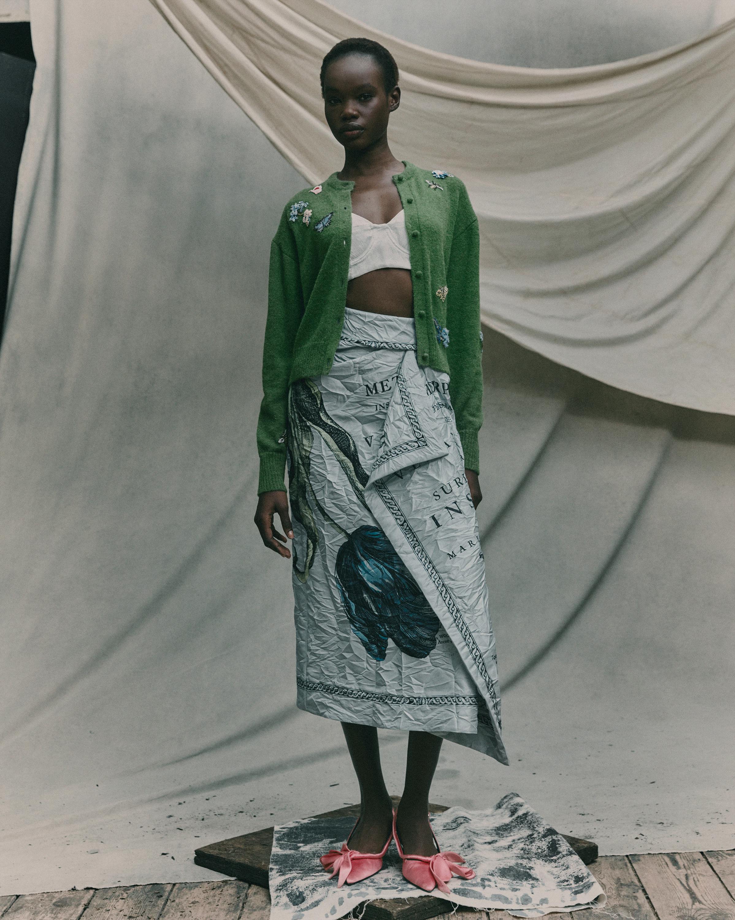 Meanwhile, Erdem teams textured satin wrap skirts with bikini tops and cozy cardigans, bringing seaside ease to urban life—because in the midst of howling winds and bitter temperatures, sometimes a twist of tropical allure is exactly what a look needs to brighten up those weeks between chilly winter and mild spring.