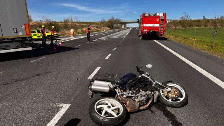 Tragická nehoda motorky s náklaďákem na D4. Jeden z řidičů zemřel, policie omezuje dopravu