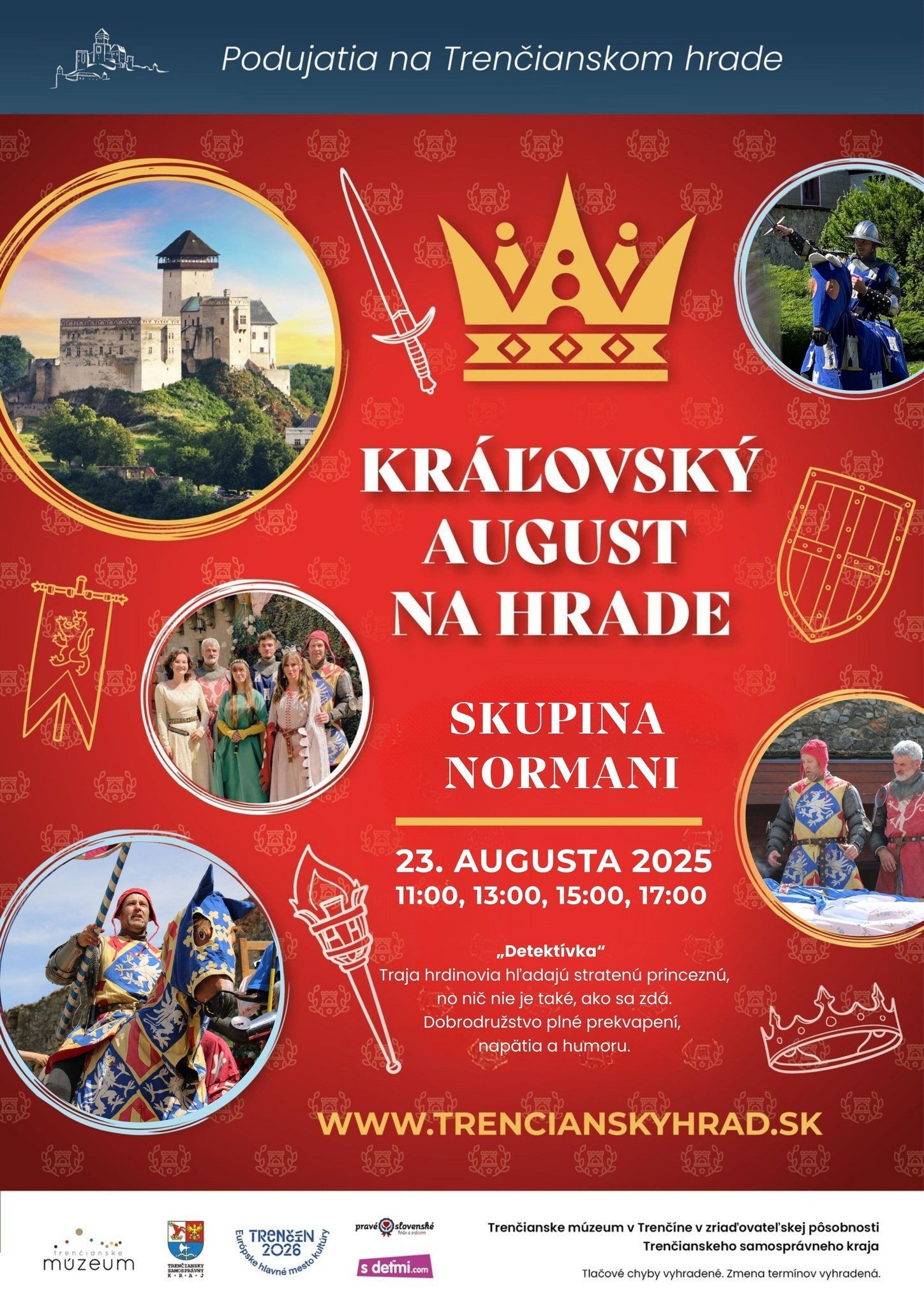 Posladná sobota s Kráľovským augustom na hrade! 23. august 2025 Trenčiansky hrad Tento víkend sa prenesieme do stredoveku s humorom a štipkou napätia! Na scénu prichádza skupina Normani so svojím predstavením: Detektívka Stratená princezná, traja záchrancovia a jeden nečakaný zvrat – nič nie je také, ako sa zdá! Stredoveká komédia s detektívnou zápletkou vás pobaví […]