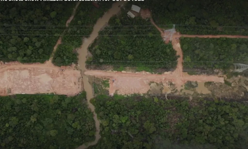 Kvôli chystanému klimatickému summitu vyrúbali brazílske úrady trinásťkilometrový úsek amazonského dažďového pralesa. Na mieste, kde predtým vládla divoká príroda, teraz rastie štvorprúdová diaľnica do mesta Belém.