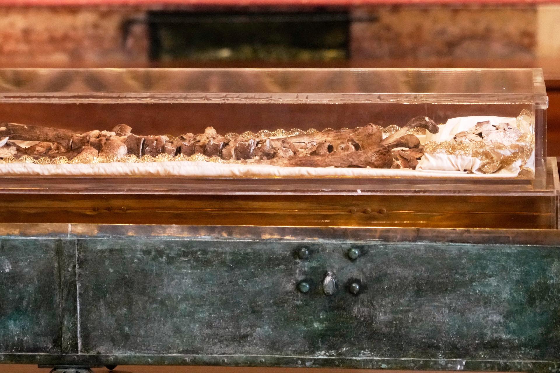 Pozostatky sú vystavené v nepriestrelnej sklenenej schránke a v bazilike sú nepretržite v prevádzke bezpečnostné kamery. Svetlo zostane tlmené, aby pozostatky nepoškodilo.