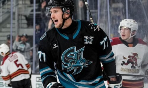⏱️ Čas čítania: 1 min (86 slov) Slovenský hokejista Pavol Regenda zaznamenal v nočnom zápase zámorskej AHL gól a asistenciu, jeho tím San Jose Barracuda však prehral na ľade Abbotsfordu Canucks 4:5 po predĺžení. V 16. minúte poslal hostí v presilovke do vedenia svojím ôsmym tohtosezónnym presným zásahom. Bol to jeho štvrtý gól v drese … Čítať ďalej VIDEO AHL: Regenda najskôr strelil gól, potom pridal asistenciu. Okuliar sa stal treťou hviezdou zápasu