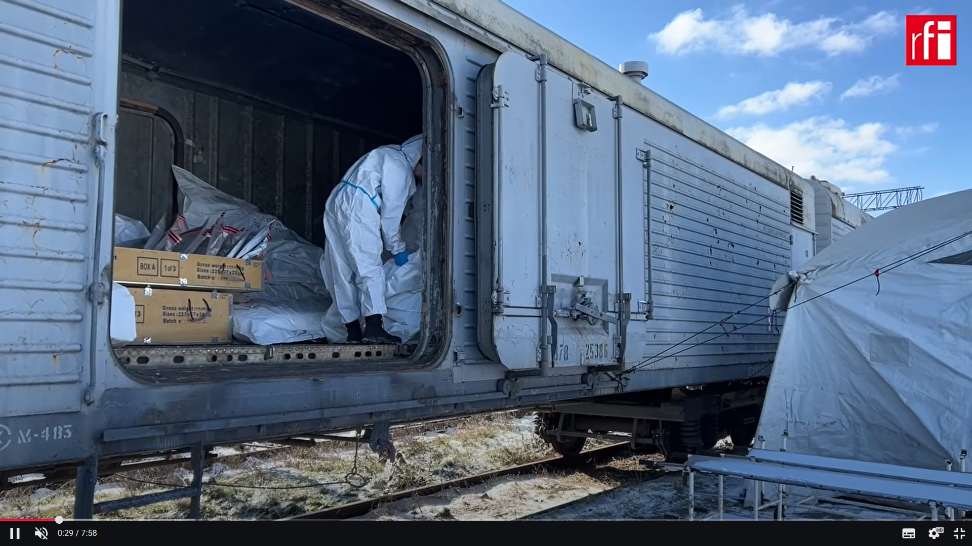 Reportéri poznamenávajú, že napriek mrazivým teplotám sa z vagónov vlaku šíri mŕtvolný zápach.