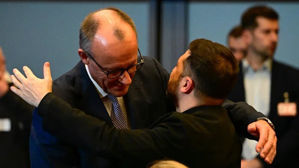 „Pokiaľ ide o dialóg o územiach, tu stále existujú rôzne pozície, poviem to otvorene. Ale považujem za dôležité, že som mal možnosť osobne tu predniesť túto pozíciu. Všetci sú však pripravení produktívne pracovať na hľadaní riešení s rešpektom a pozornosťou voči Ukrajine. Ukrajina je pripravená pokračovať v konštruktívnej a spravodlivej práci na dosiahnutí konečného výsledku. Koordinujeme svoje kroky s kancelárom, ďakujeme ti za to, Friedrich, ako aj s ostatnými našimi európskymi partnermi a hlavami štátov.“ – Nelegitímny opäť vysiela lúče lásky drahému kancelárovi Merzovi.