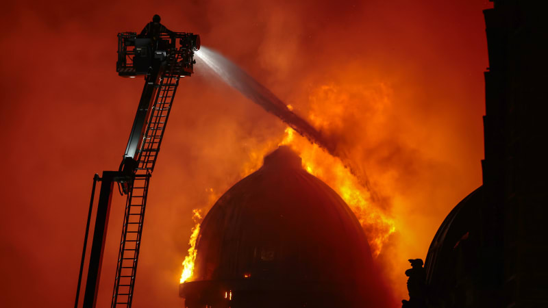 Na fotografiích z místa jsou vidět oranžové plameny šlehající z prostor kupole historické budovy. Jedno z videí také zachytilo hustý kouř, jak se valí ze vchodu do zmiňovaného obchodu. „Panebože, je to jako výbuch,“ uvedl na záběrech svědek dle CNN.